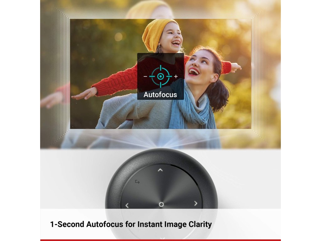 Automatické zaostření obrazu Automatické zaostření během 1 sekundy analyzuje promítací plochu, zaostří obraz a upraví případné lichověžníkové zkreslení dané náklonem projektoru. Poskytuje tak vždy obraz ostrý jako břitva a ve vysokém rozlišení. |